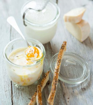 • Add the cream and the nutmeg and mix.